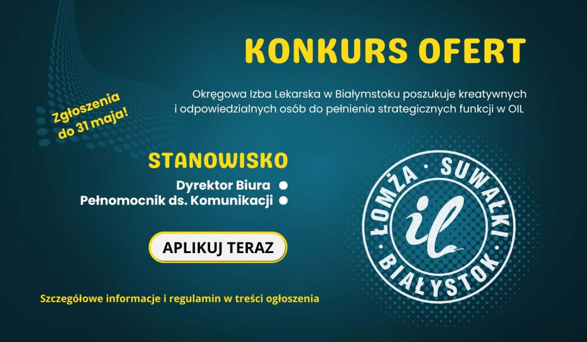 Bezpłatny biuletyn dla członków Okręgowej Izby Lekarskiej w Białymstoku i przedstawicieli innych izb lekarskich w Polsce, a w nim między innymi "NIE REWOLUCJONISTA, ALE REFORMATOR" – rozmowa z dr. n. med. Piotrem Sielatyckim, prezesem ORL w Białymstoku na kadencję 2026–2030.PRZEJDŹ DO BIULETYNU