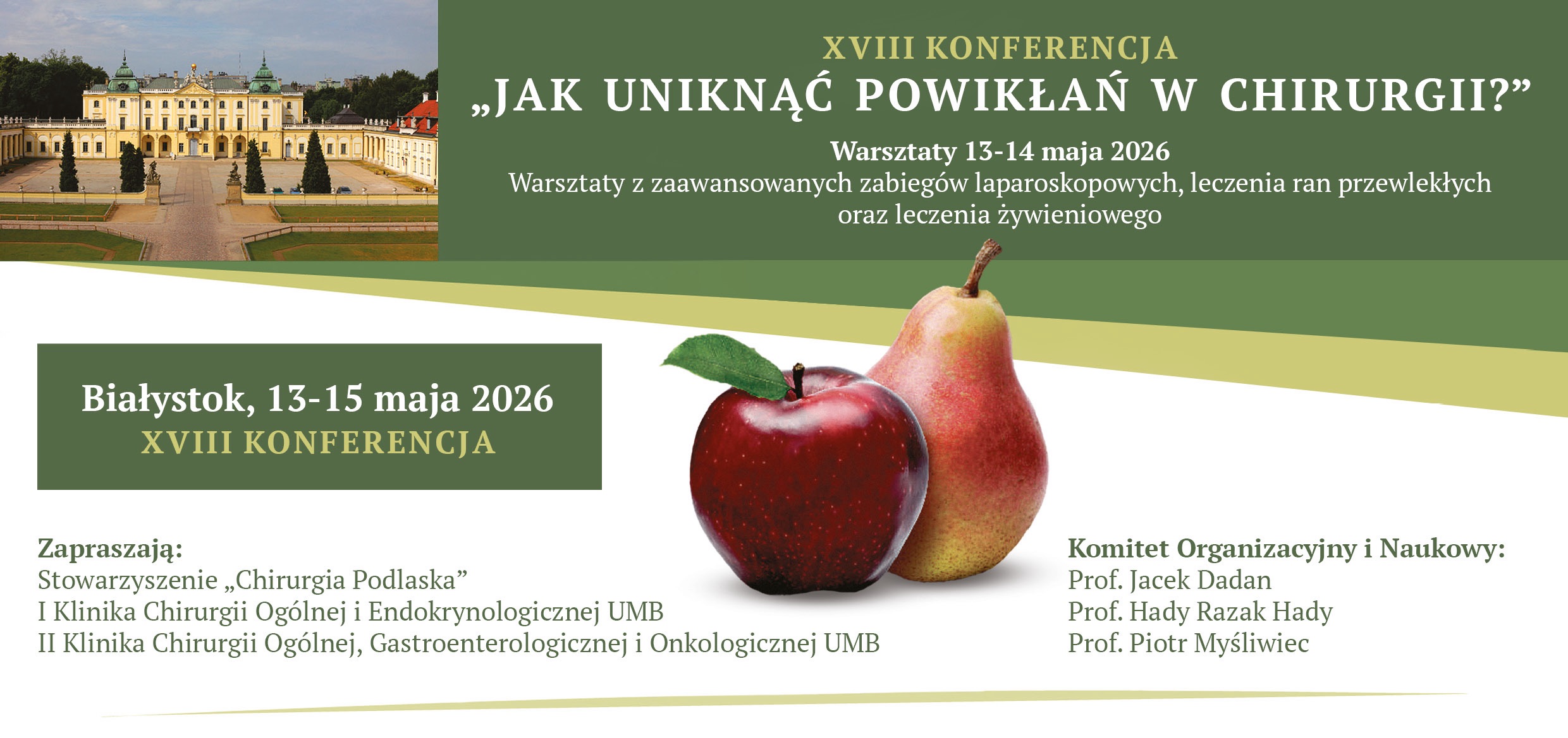 w imieniu Komitetu Organizacyjnego i Naukowego (prof. Jacek Dadan, prof. Hady Razak Hady, prof. Piotr Myśliwiec) serdecznie zapraszamy do udziału w XVIII Konferencji „Jak uniknąć powikłań w chirurgii?”.